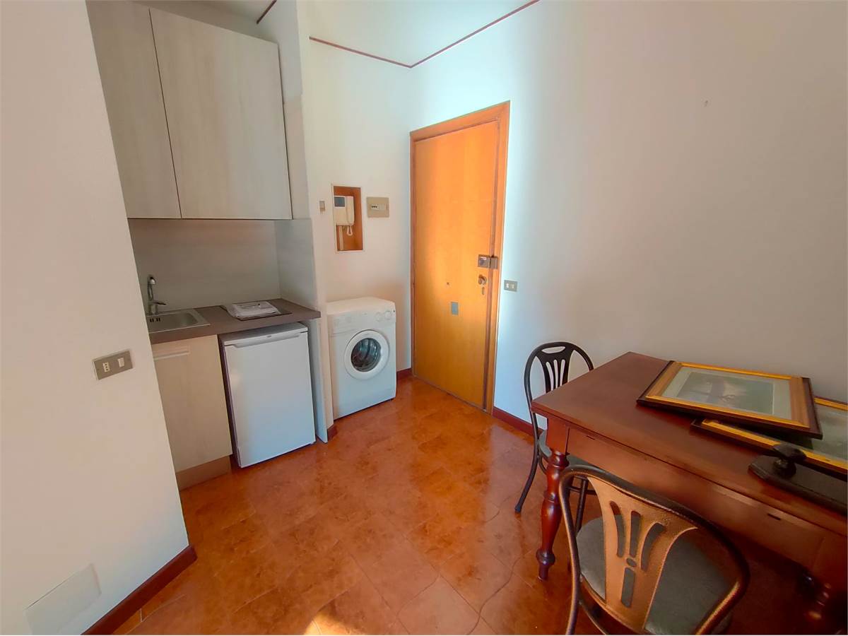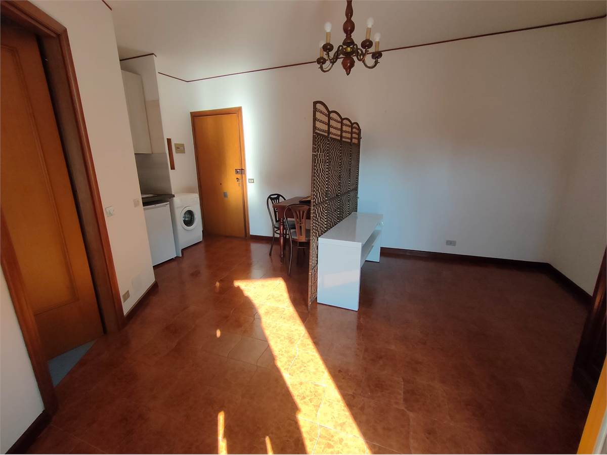 Luminoso monolocale al terzo piano, con bagno finestrato e terrazzino con vista panoramica.