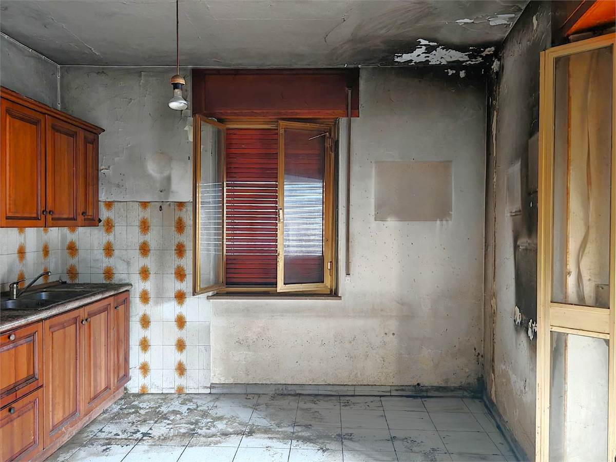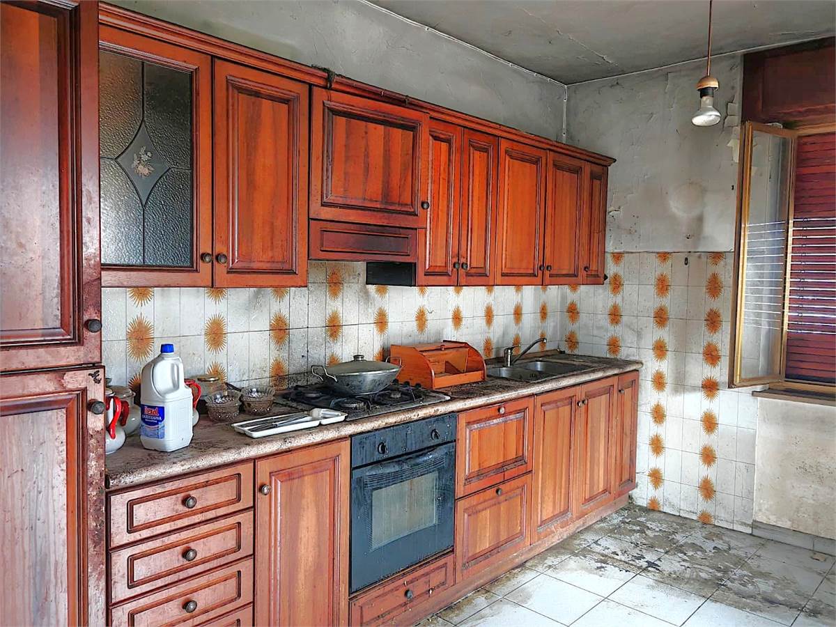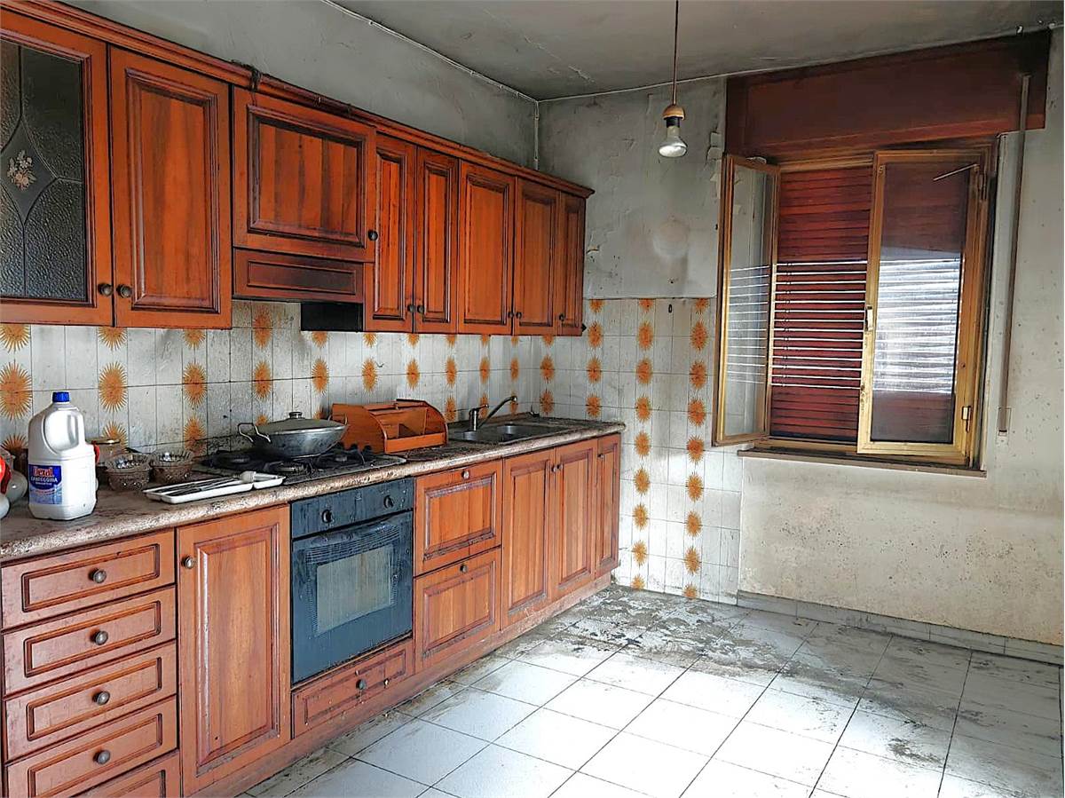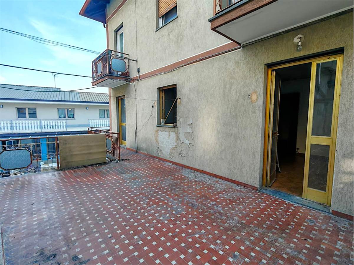 In casa trifamigliare, appartamento sito al piano primo, da ristrutturare internamente, di grandi dimensioni composto da: ingresso, ampia cucina abitabile con affaccio diretto su comodo e ben esposto terrazzino, salone doppio, due camere da letto matrimoniali e balcone, caratterizza l'immobile ampia terrazza sul retro dell'abitazione. Riscaldamento autonomo, nessuna spesa condominiale. Porzione di terreno con accesso diretto dalla statale da adibire a posto auto privato. L'immobile necessita di lavori sugli impianti.