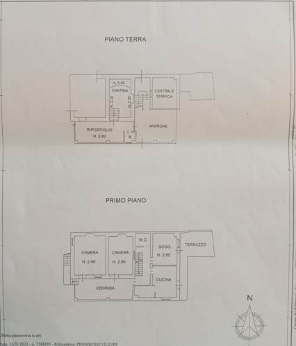 L'appartamento con ingresso indipendente è così composto: al piano primo soggiorno con angolo cottura, due camere matrimoniali, veranda, bagno, terrazzo e balcone; al piano terra box auto, androne, centrale termica, cantina e ampio ripostiglio.