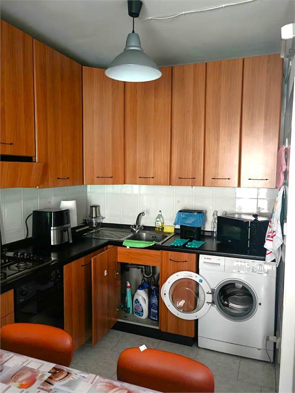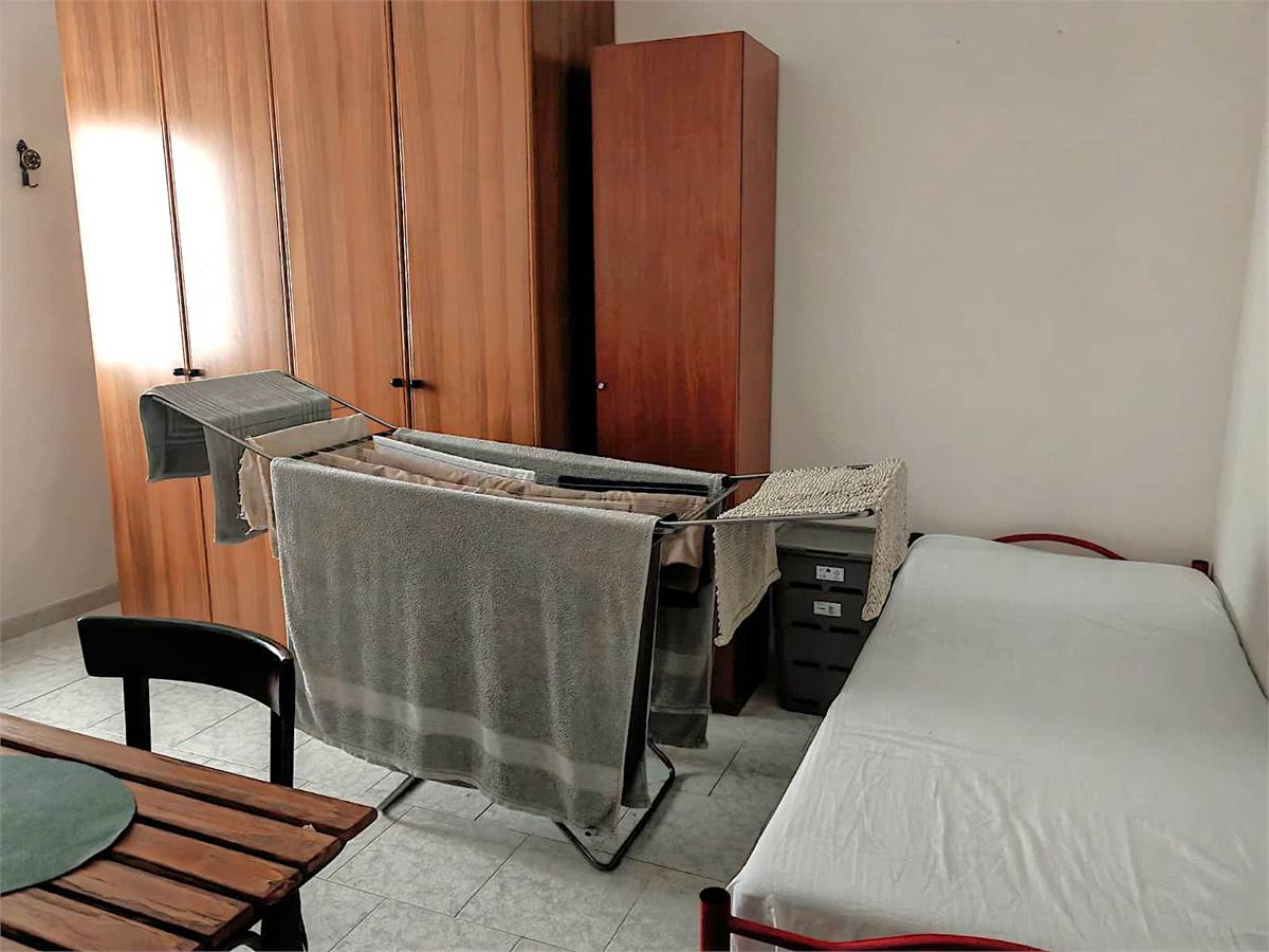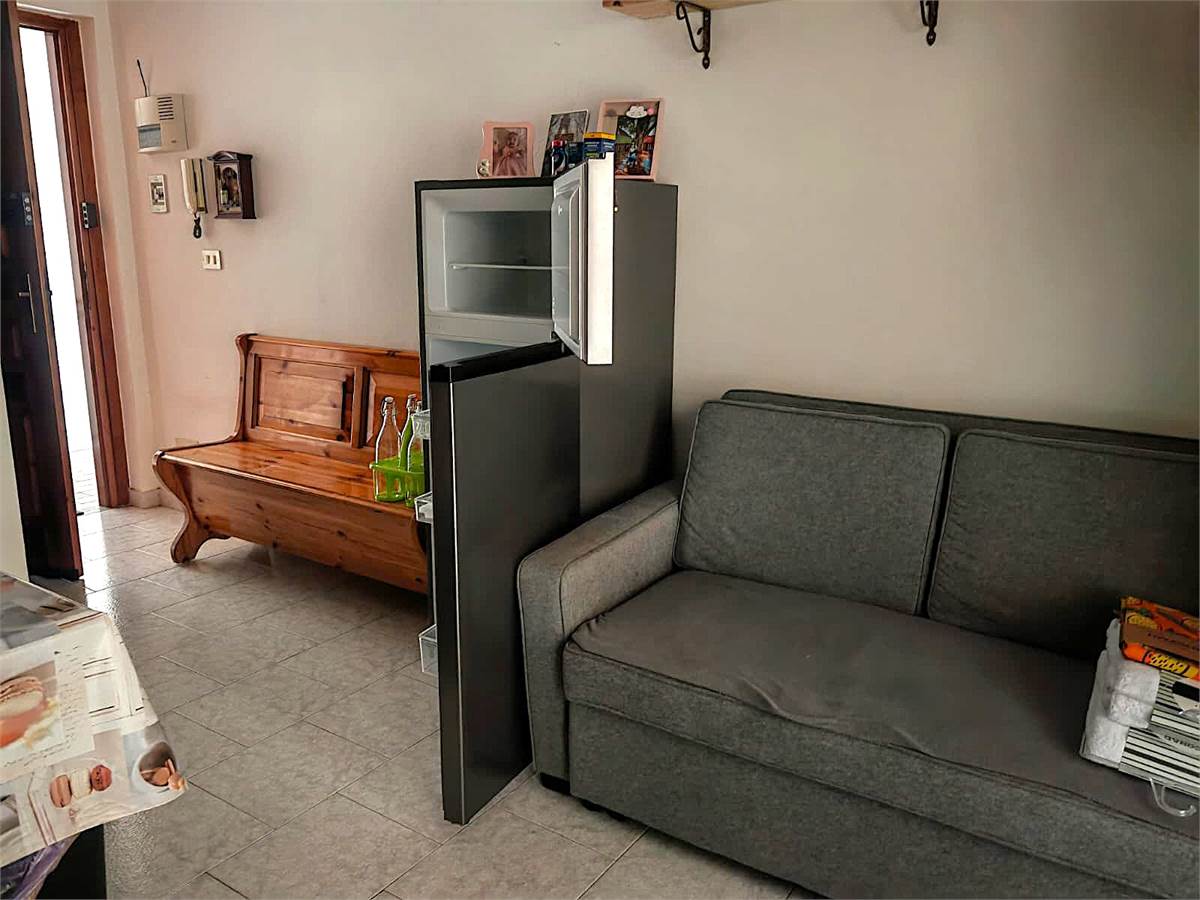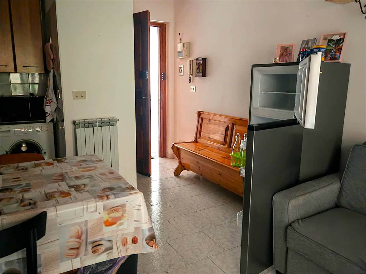 L 'appartamento è composto da ingresso su soggiorno con angolo cottura, due camere da letto, una matrimoniale e una singola, disimpegno, terrazzo e bagno finestrato con doccia.