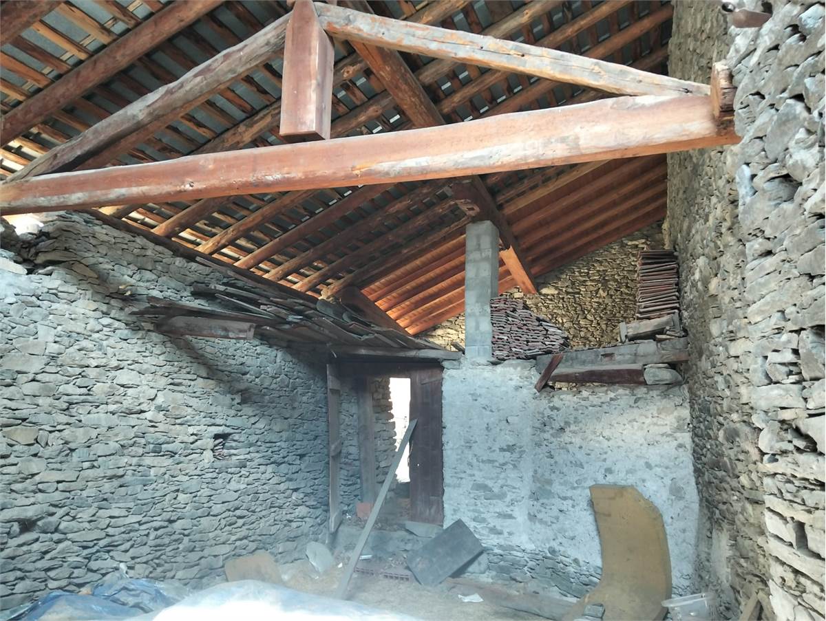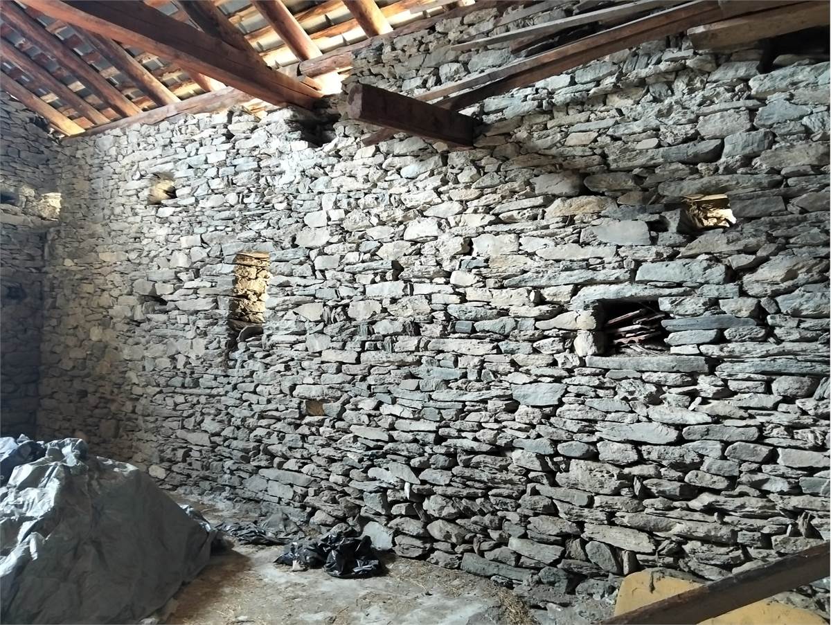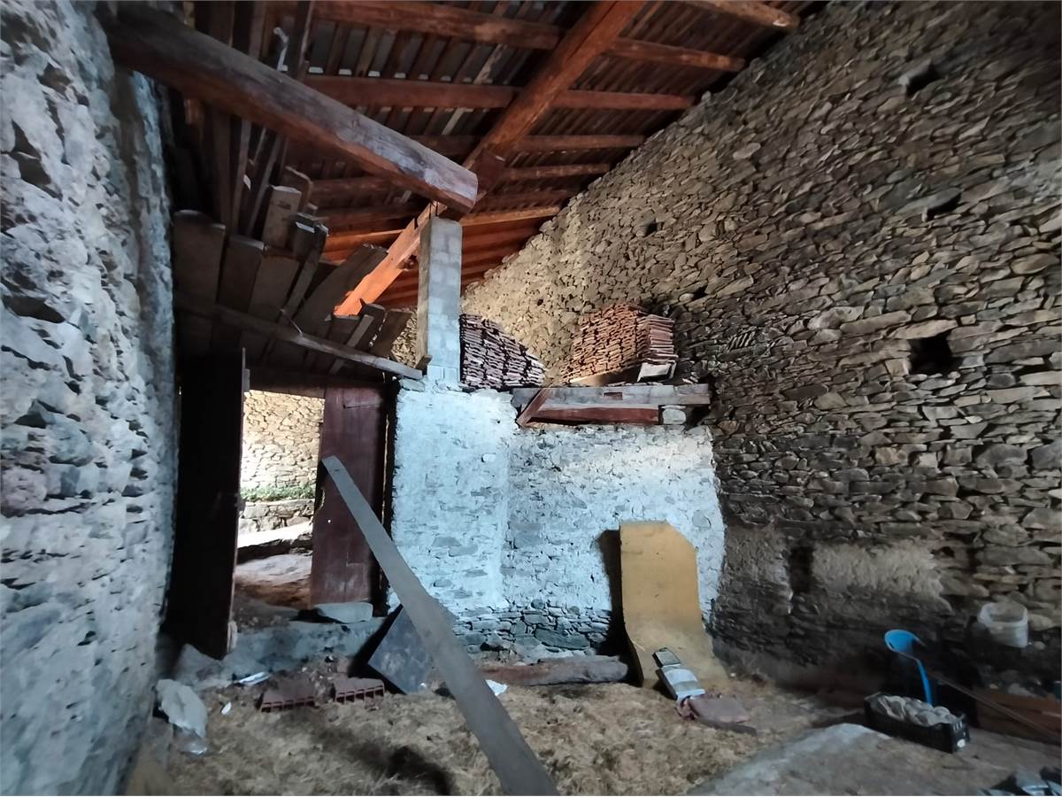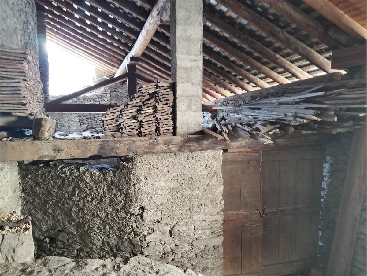 Sulla media collina di Nus proponiamo in vendita un grande fabbricato di pietra, originariamente adibito a fienile.