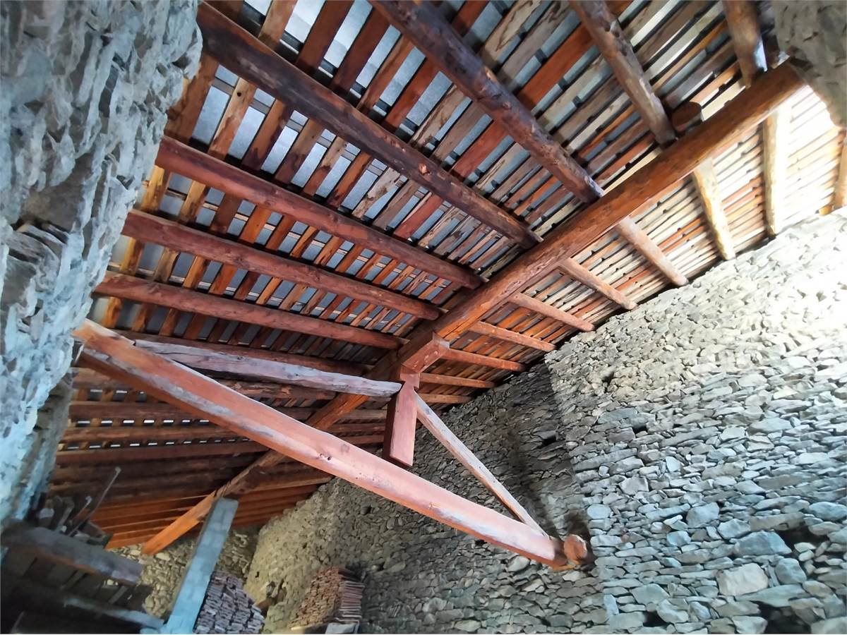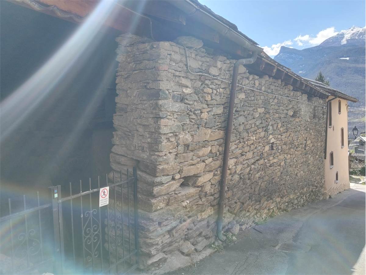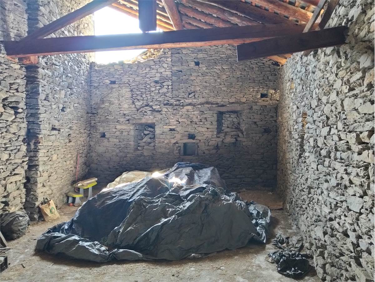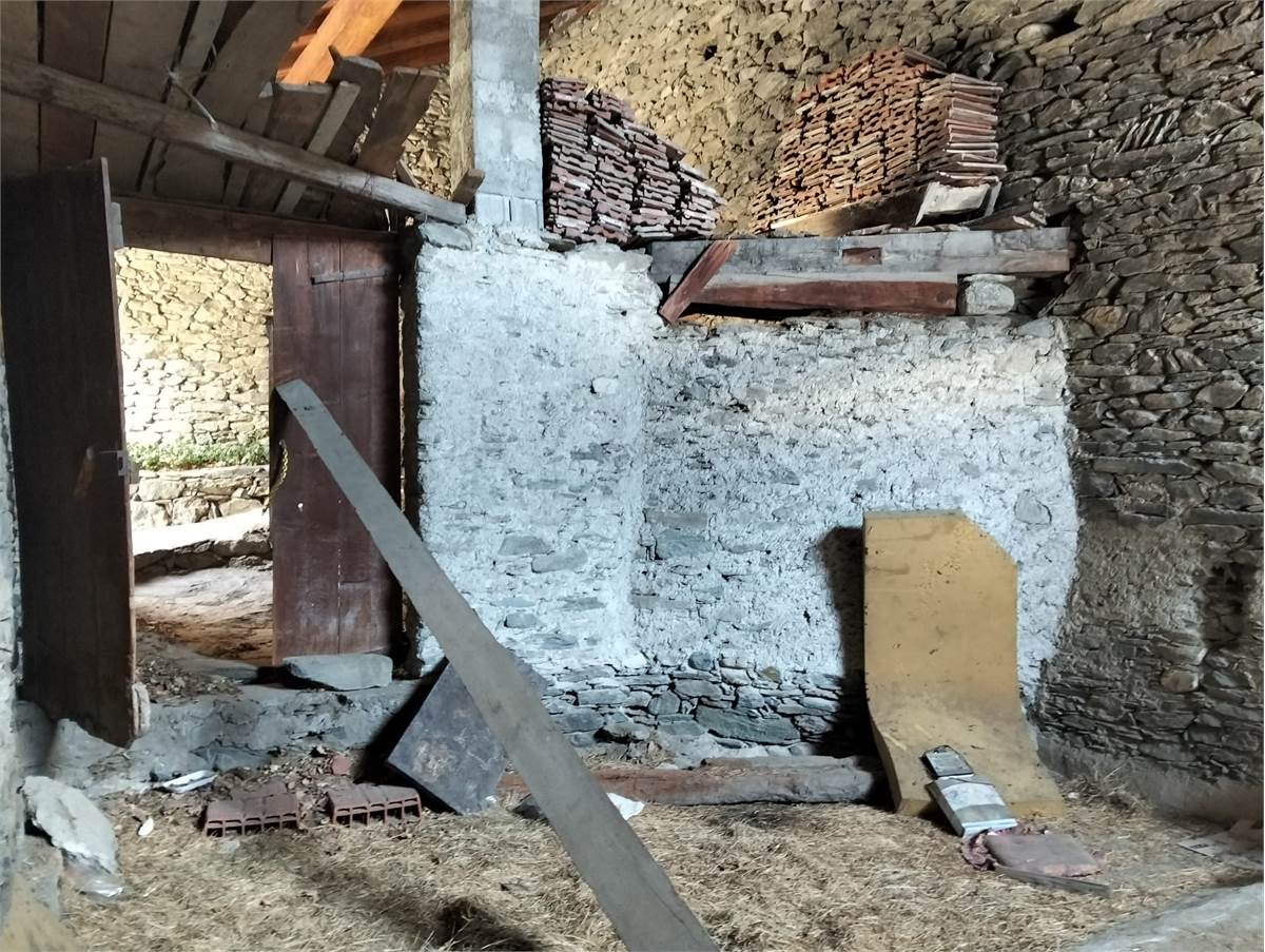 Sulla media collina di Nus proponiamo in vendita un grande fabbricato di pietra, originariamente adibito a fienile.