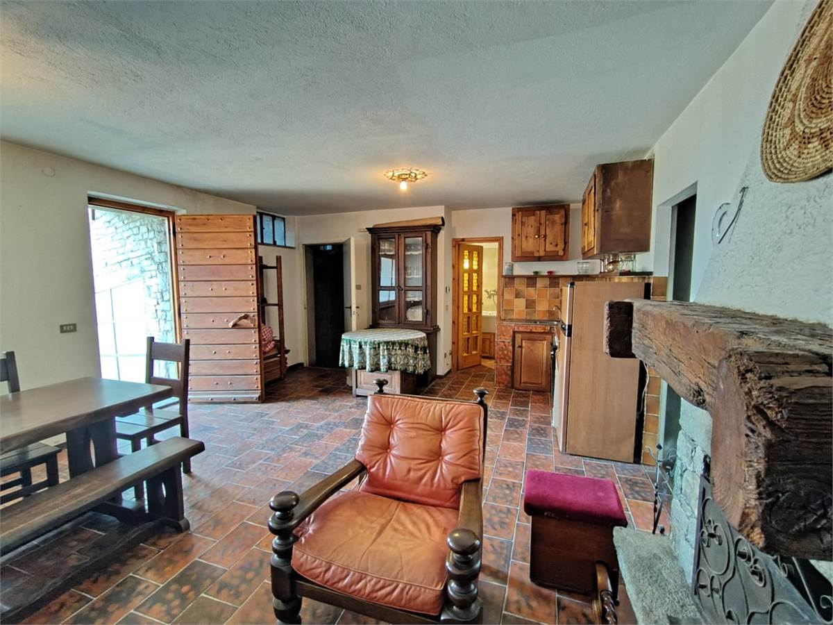 alloggio composto da ingresso, due camere, soggiorno con angolo cottura e camino, bagno e balcone al piano primo;